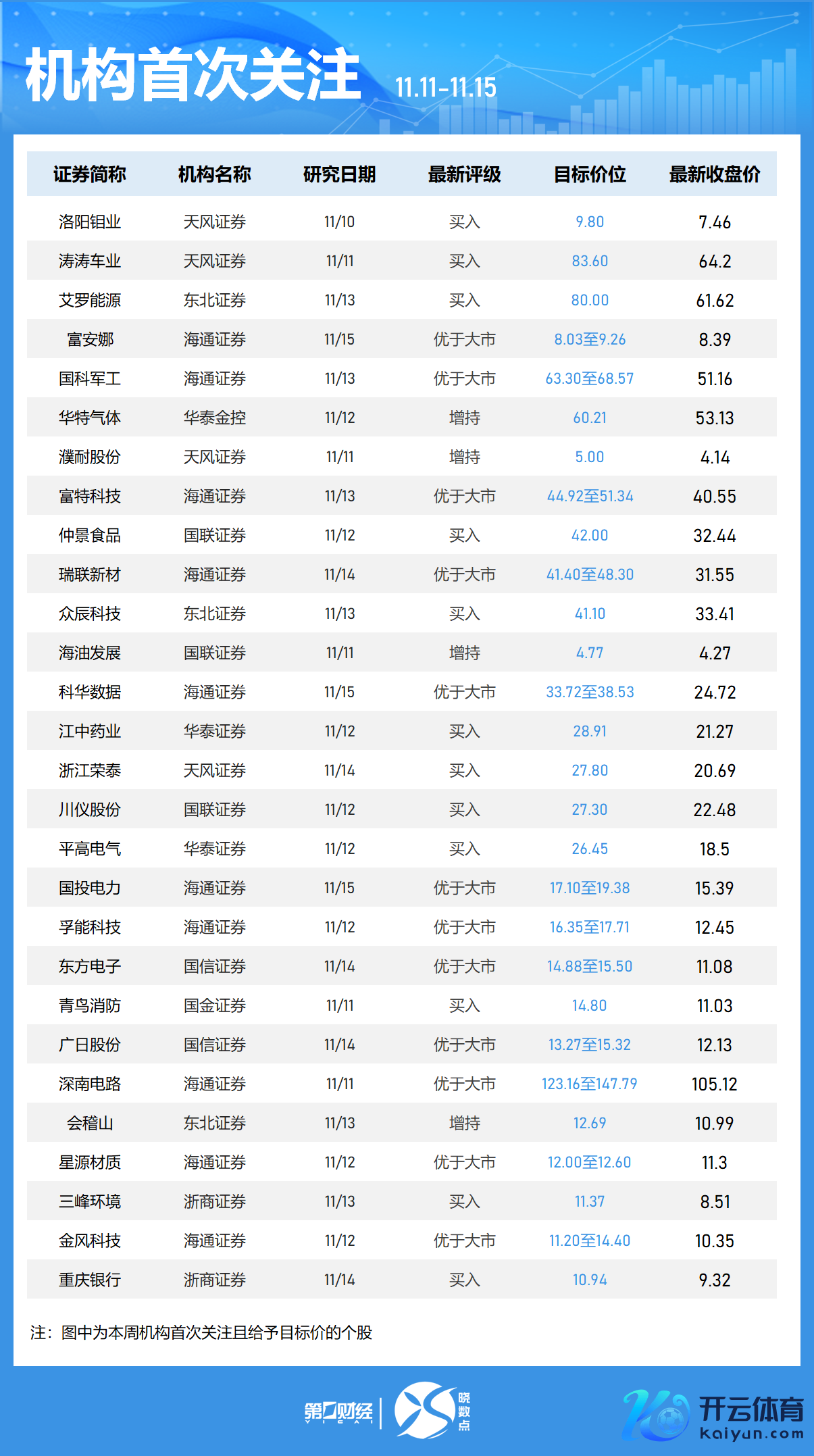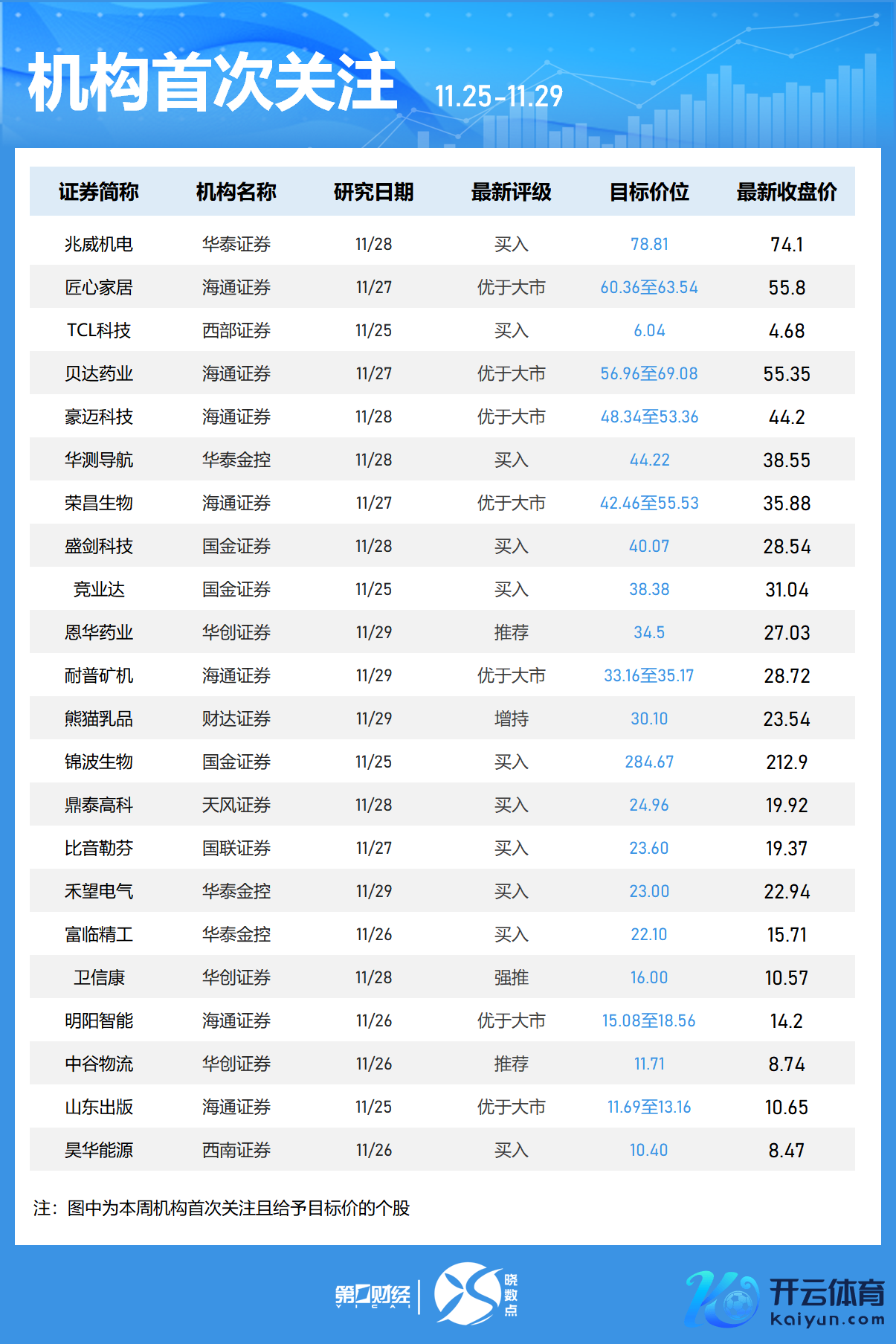 Wind数据裸露,机构本周初度关爱71只个股,其中17股被赐与筹算价。-慎重医疗获华泰证券赐与“买入”评级,筹算价为48.44元,该股最新收盘价为42.36元;-新铝时间获海通证券“优大于市”评级,筹算价为73.46至89.44元,最新收盘价为63.77元;-藏格矿业获华创证券赐与“推选”评级,筹算价为33.30元,该股最新收盘价为27.68元;-中广核技、赛力斯、绿的谐波、豪恩汽电等本周均获机构初度关爱。
