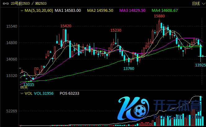 拆伙当日下昼收盘,自然橡胶期货主力合约RU2505收跌4.86%,至16840元/吨;20号胶期货主力合约NR2503收跌4.36%,至14155元/吨。合成橡胶期货则相起义跌,主力合约BR2502收涨1.06%,至13305元/吨。