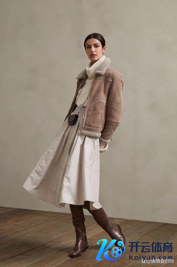 【上重下轻】轻重辘集的搭配表情,在厚外衣的穿搭中通常收效。淡色裤装、丝袜、裙装等皆是可以的接管。尤其是眇小的裙装,开衩的剪裁让裙摆随风摇曳,不管何种材质皆能带来眇小之感。而缎面裙、纱裙等浮薄材质的裙装,则需以蓬松的裙摆撑起下半身的重量感,以达到落魄均衡之好意思。